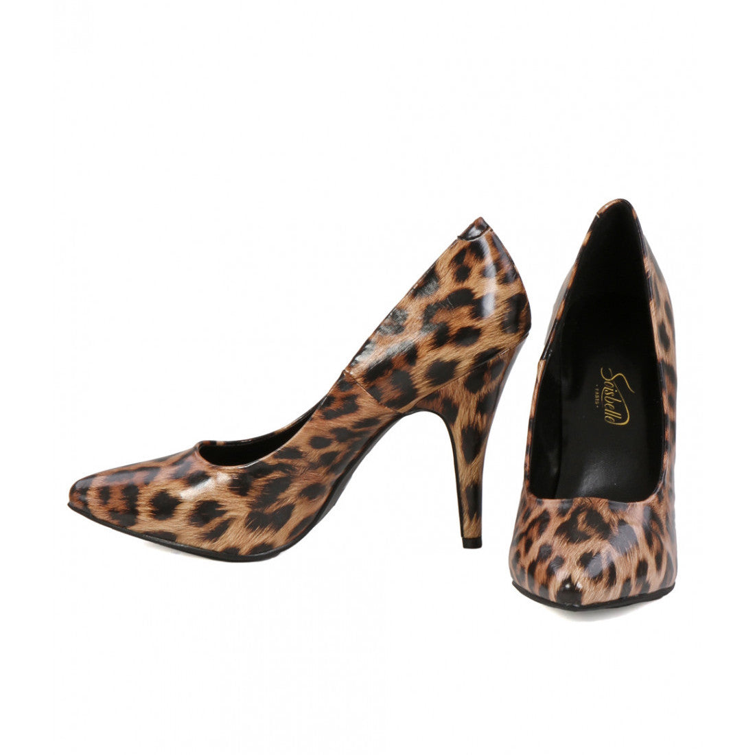 Escarpins grande taille en simili cuir, léopard - Sois Belle