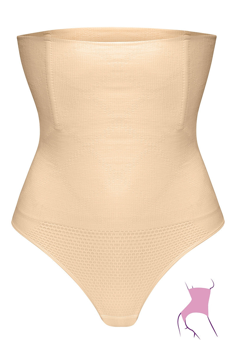La gaine string en beige de la marque Starbust affine votre silhouette. Elle se place sous la poitrine et gaine grâce aux quatre baleines de maintient. De plus, la gaine est très discrète, même sous des vêtements près du corps.