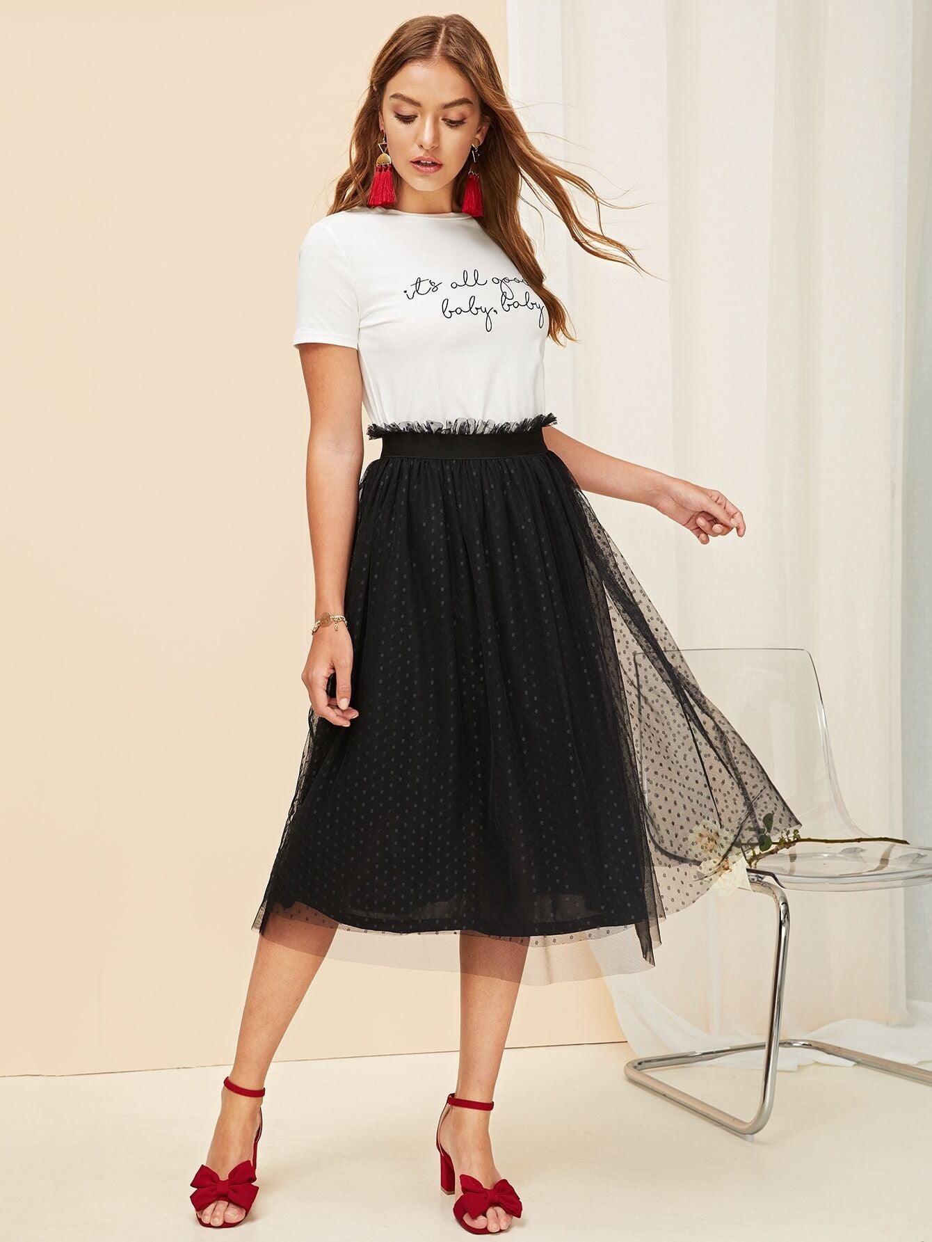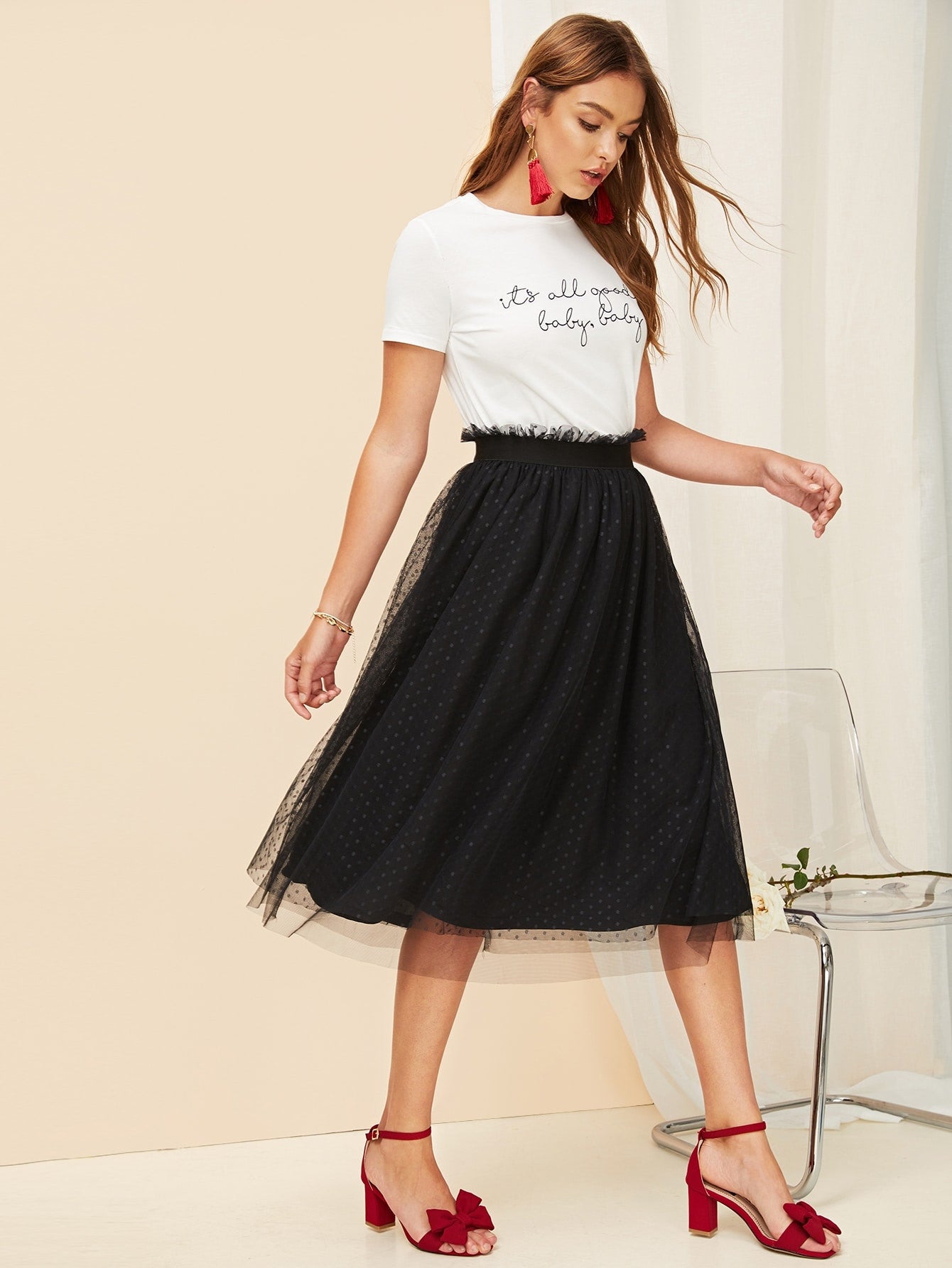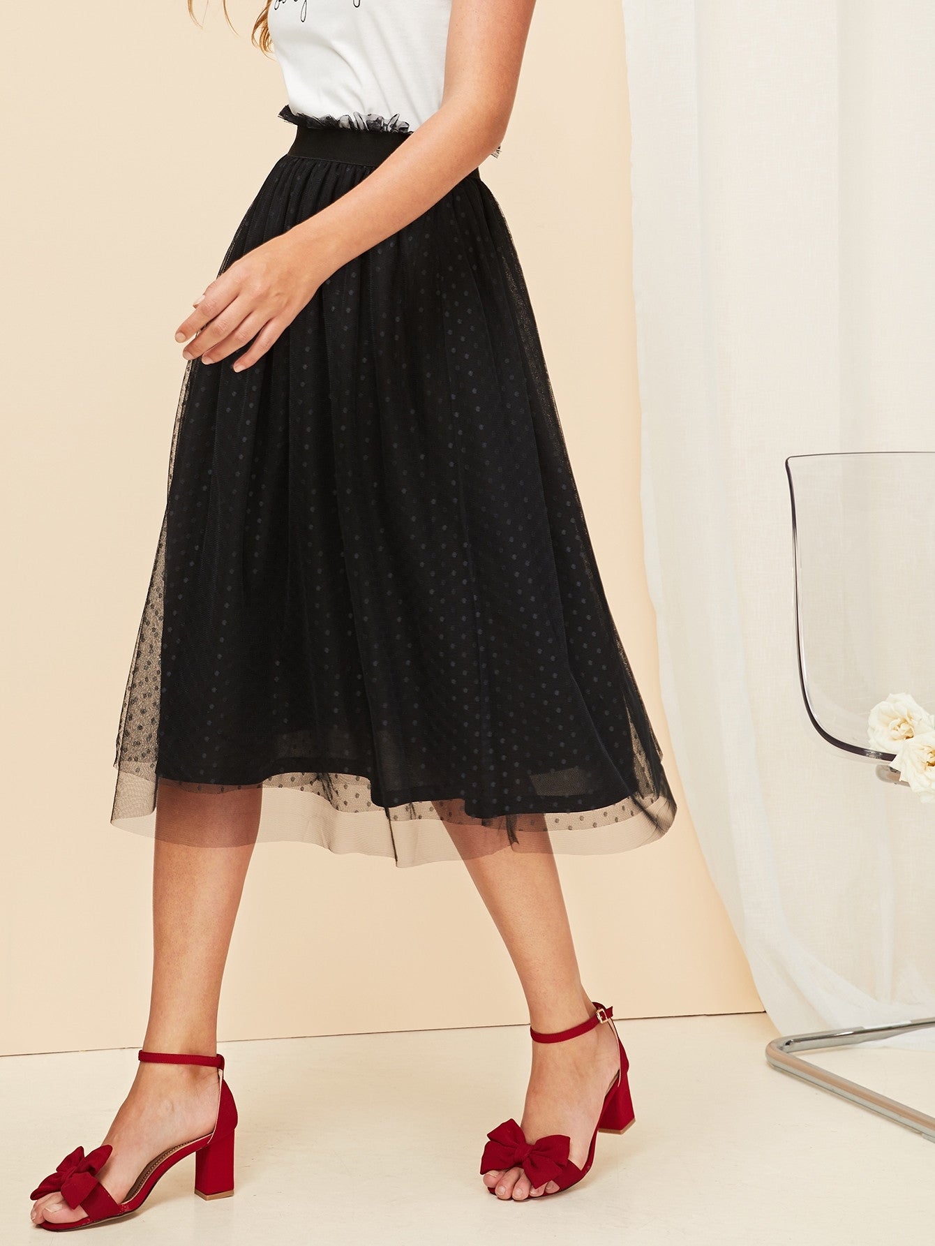 Jupe en maille à pois superposée et taille froncée - SHEIN
