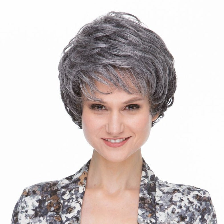 La perruque Paula en gris de la marque Sepia est une perruque courte en cheveux synthétiques. Il s'agit d'une coiffure courte qui ne manque pas de mouvement grâce à ses cheveux ondulés, donnant un effet décoiffé. Paula donne également beaucoup de volume. Elle est faite en fibres synthétiques qui résistent à la chaleur, ce qui en fait une perruque aux possibilités de coiffures illimitées avec un lisseur ou un fer à boucler.