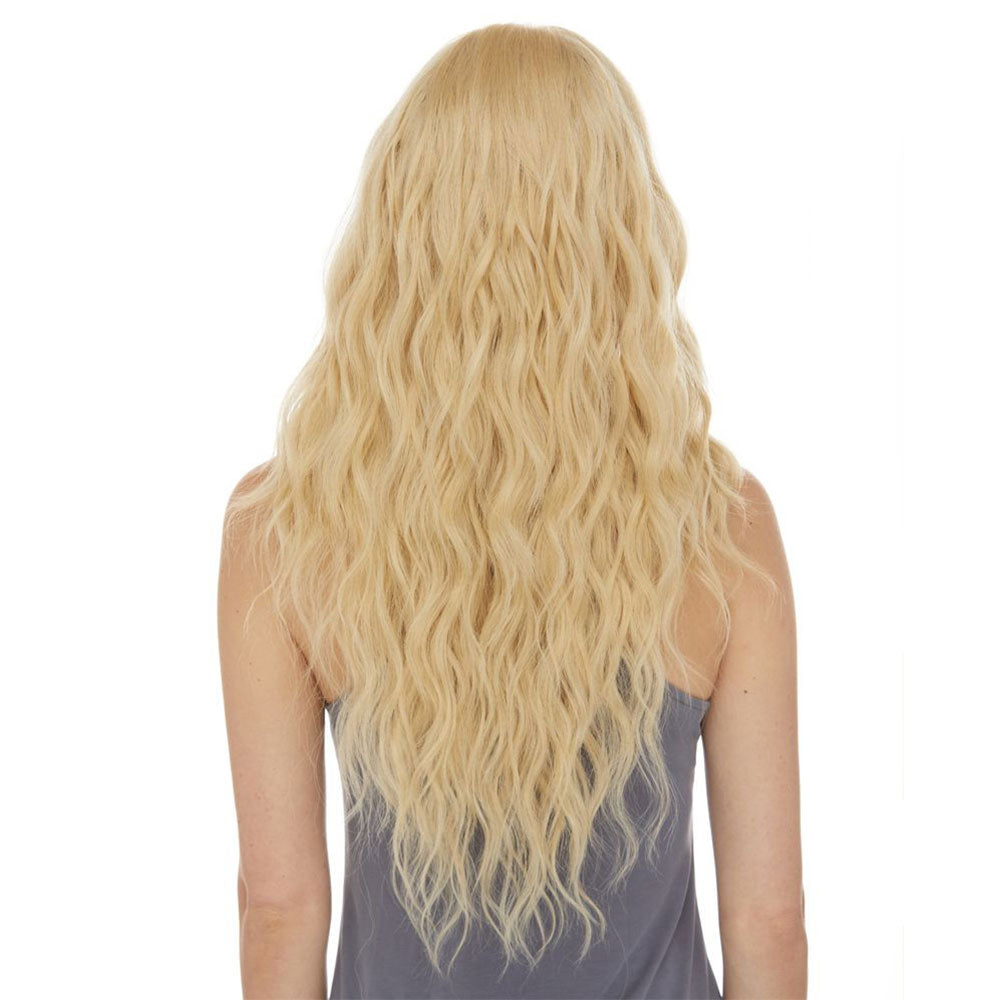 Shakira est une perruque de la marque Sepia aux cheveux longs en blond platine. Elle se distingue par ses ondulations naturelles qui lui donnent du charisme et du volume. Il s'agit d'une perruque lace front que l'on peut adapter à loisir en fonction de la forme du visage. Shakira est faite de fibres synthétiques qui résistent à la chaleur, ce qui en fait une perruque aux possibilités de coiffures illimitées avec un lisseur ou un fer à boucler.