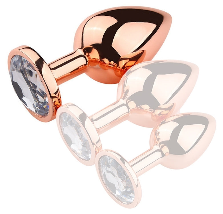 Plug anal bijou transparent PinkyGold taille L, or rose - MyPlayToys